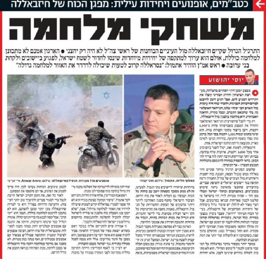 حذر الخبير العسكري "يوسي يهوشع" بمقال كتبه في صحيفة يديعوت أحرنوت، من الجهوزية الكبيرة التي يبديها حزب الله والجرأة التي يمكن أن تتطور إلى عملية واسعة لقوات الحزب الخاصة، بالسيطرة على أجزاء من الجليل.