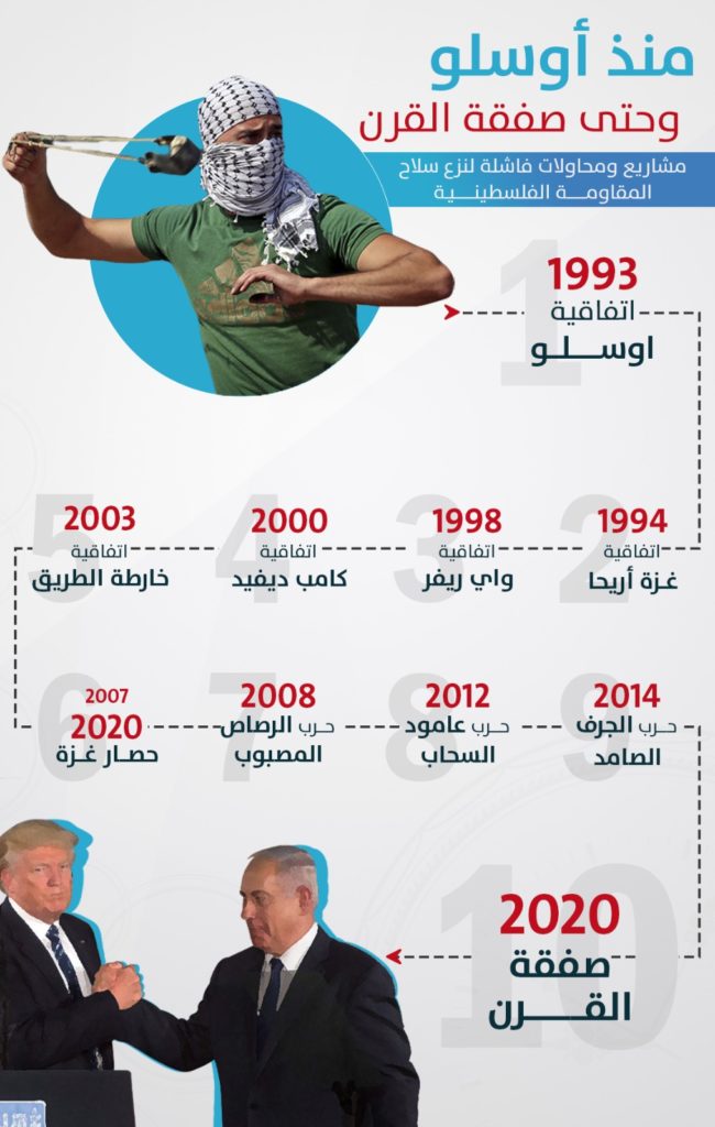 مُنذ أوسلو وحتى صفقة القرن: مشاريع ومحاولات فاشلة لنزع سلاح المقاومة انفوجرافيك 8 فبراير 2020 كلمات دلالية نزع سلاح المقاومة صفقة القرن